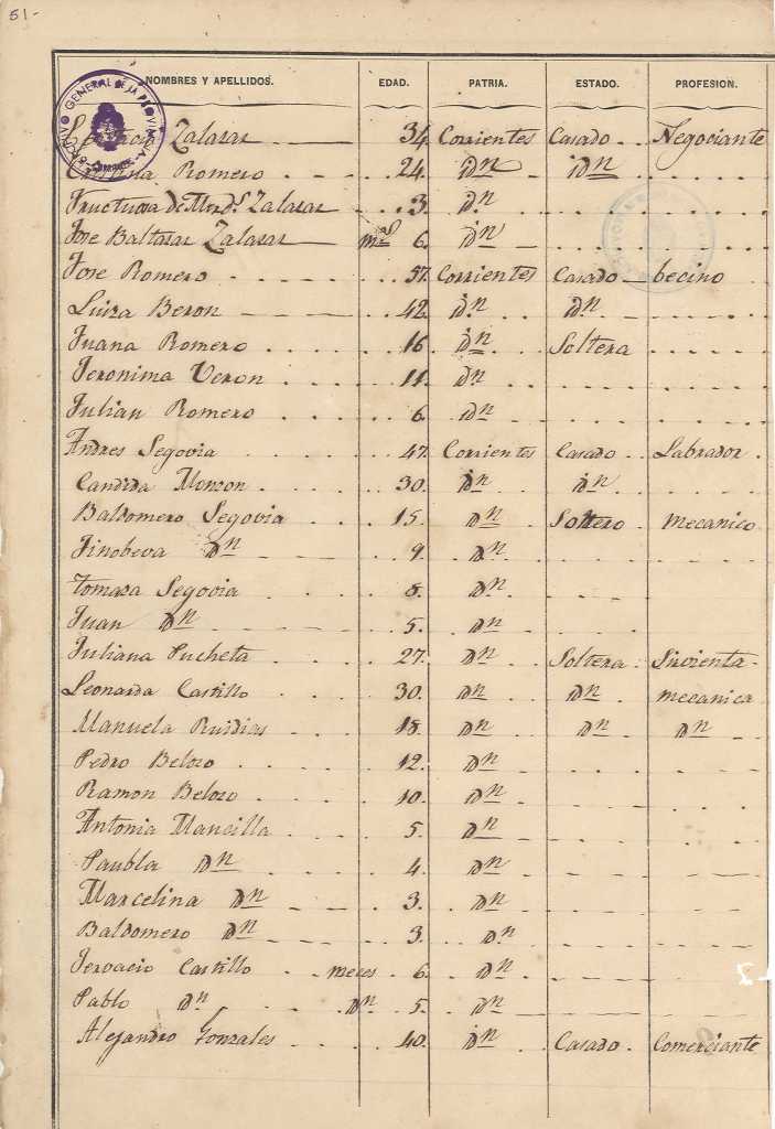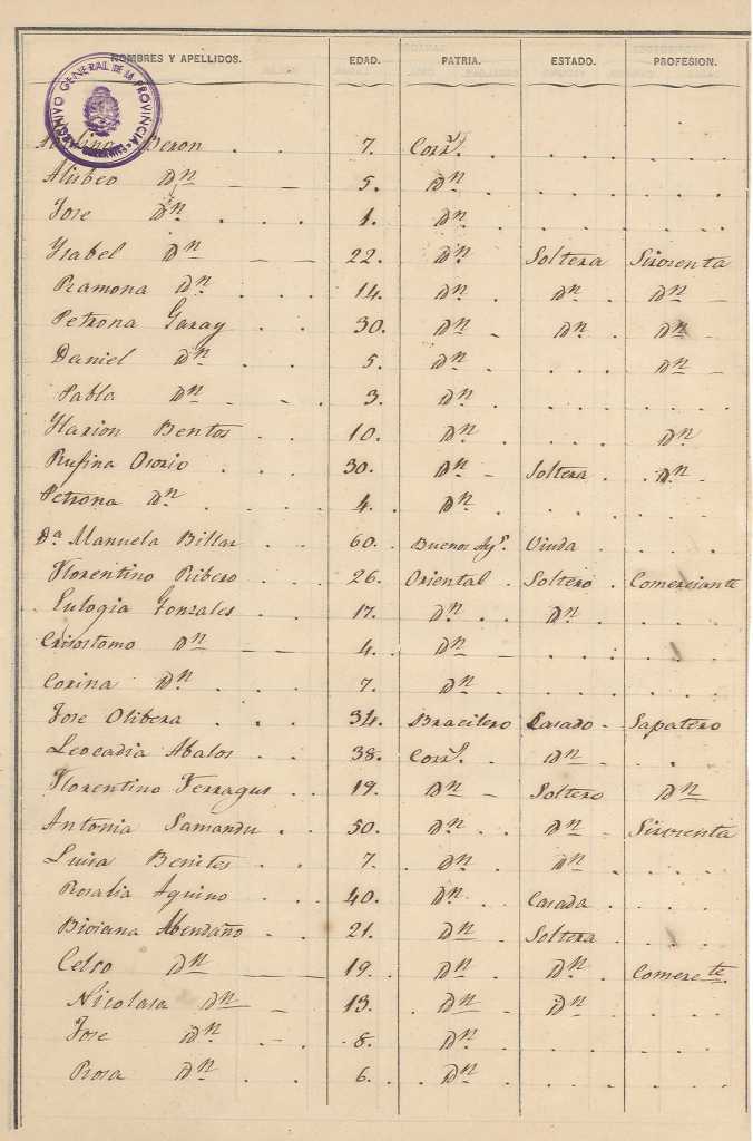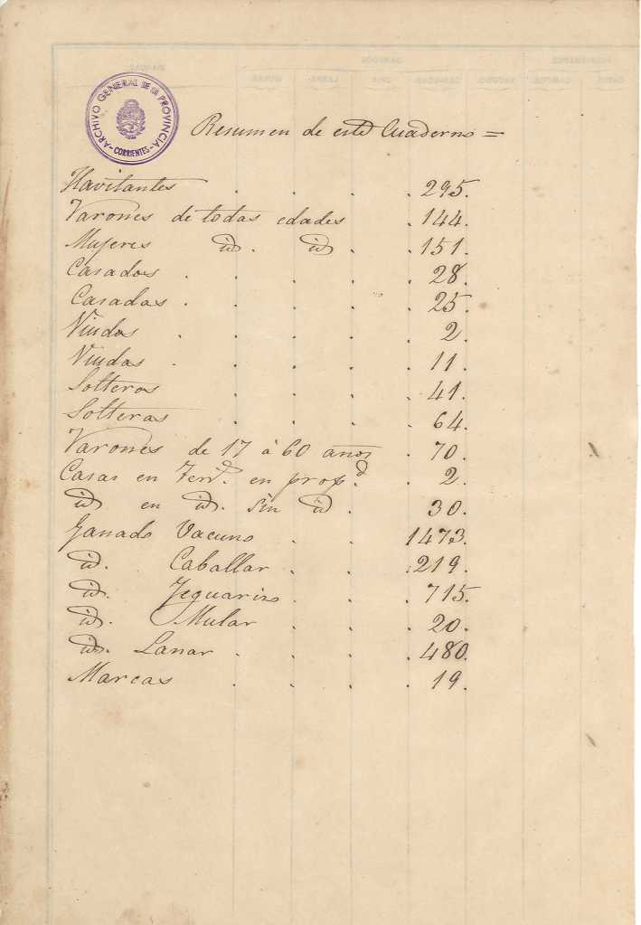 Padrón N°3 del Departamento Pai Ubré (Mercedes) Partido del Pueblo 1° Sec.