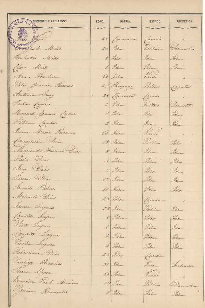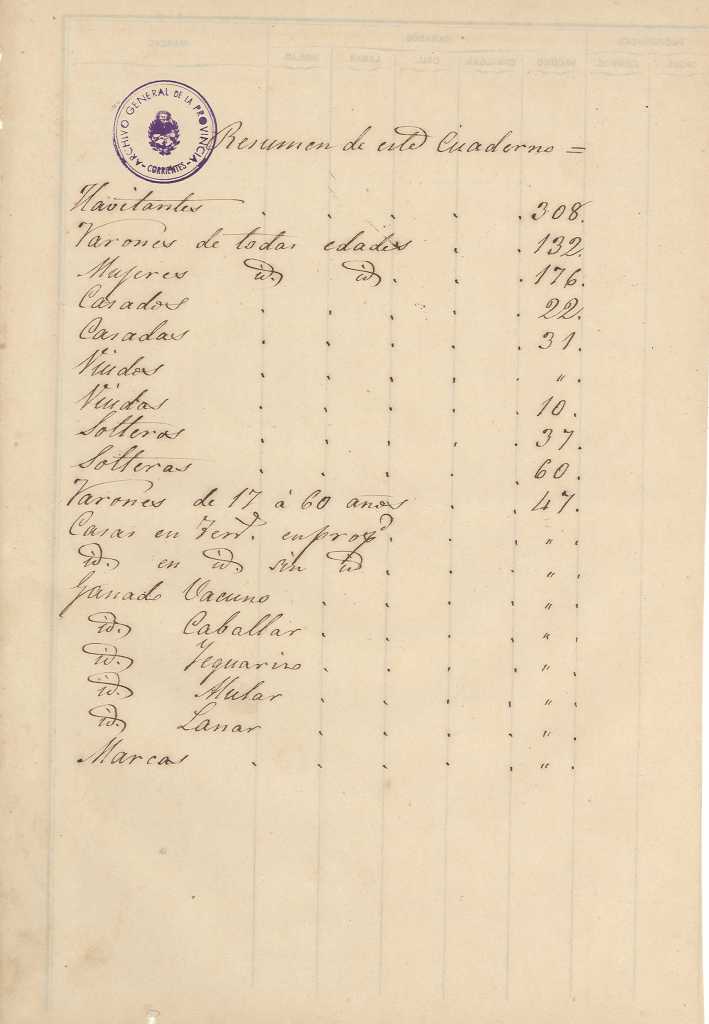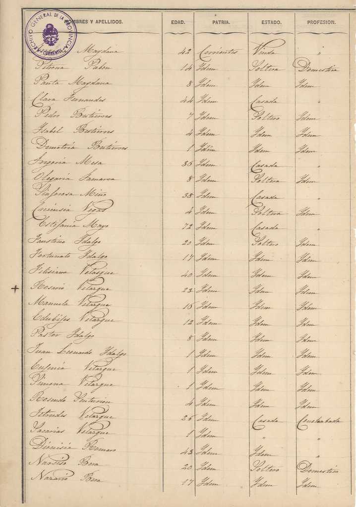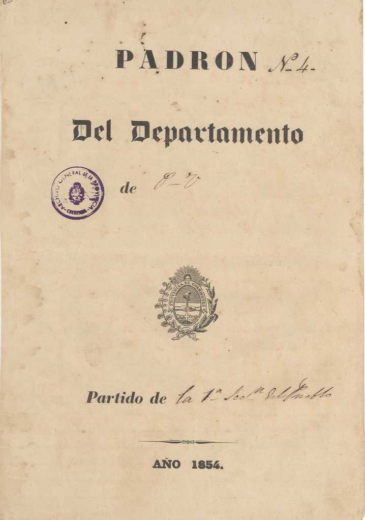 Padrón N°4-Departamento Paí Ubré (Mercedes Corrientes), Partido de la 1° Sección del Pueblo