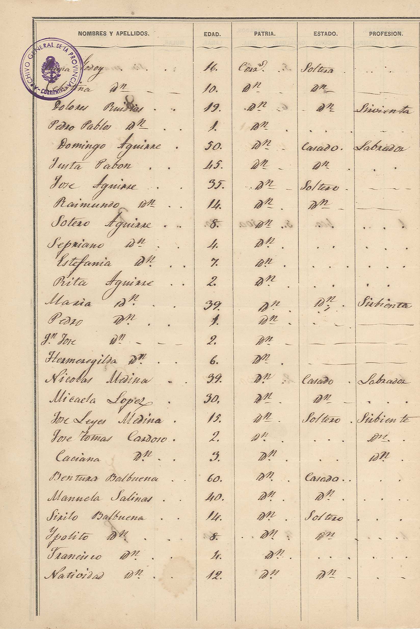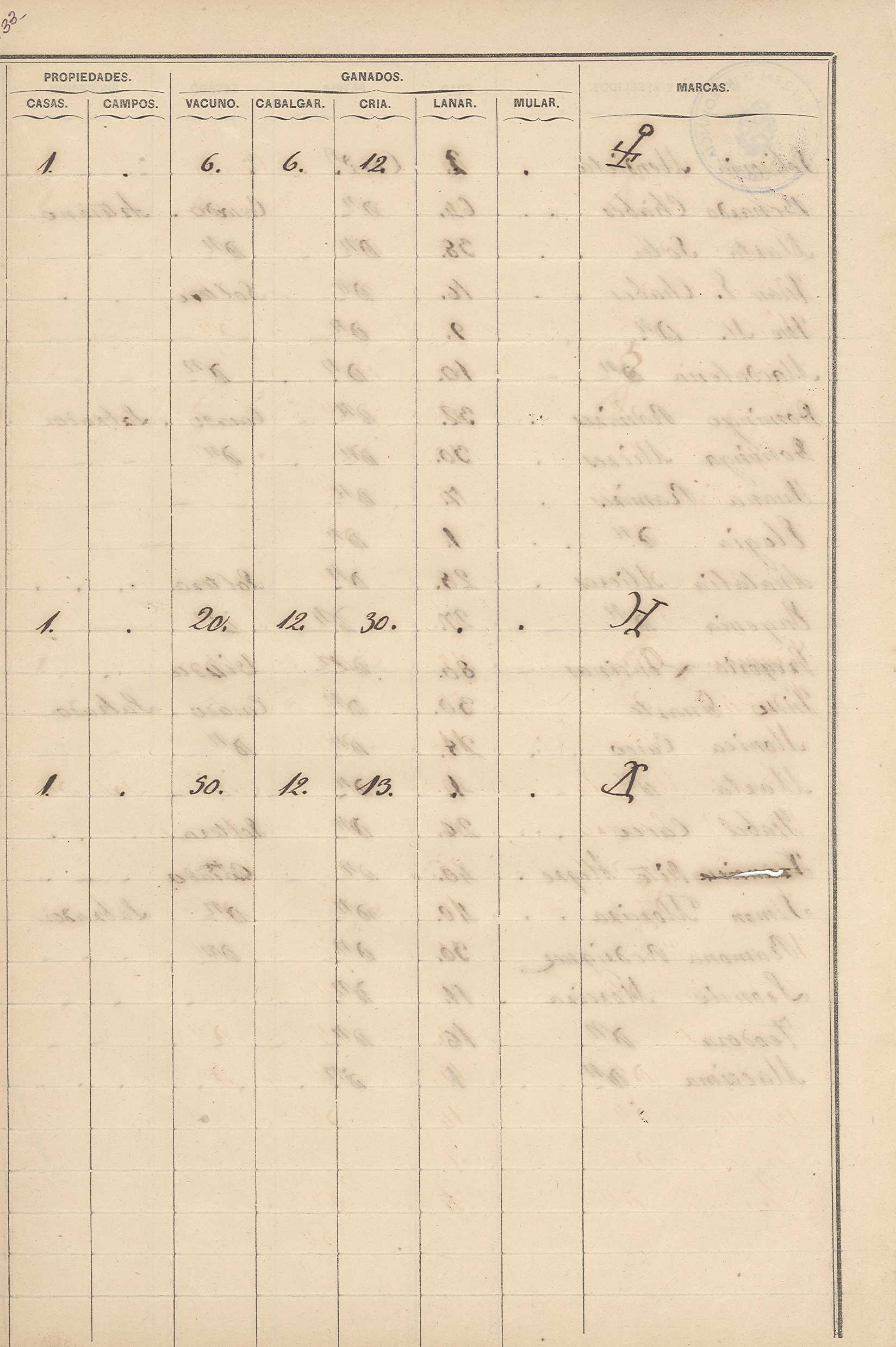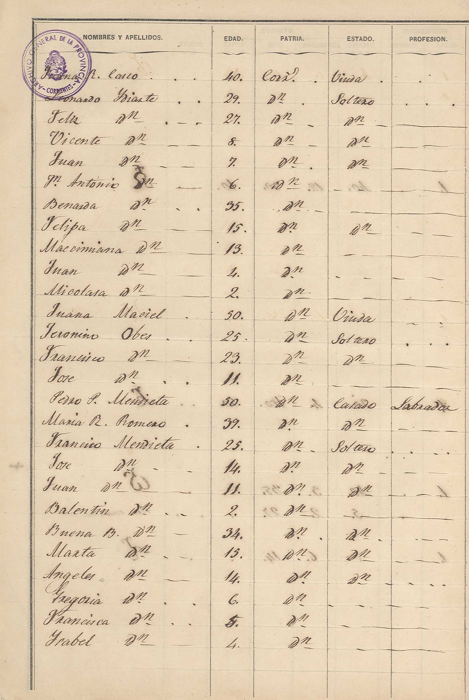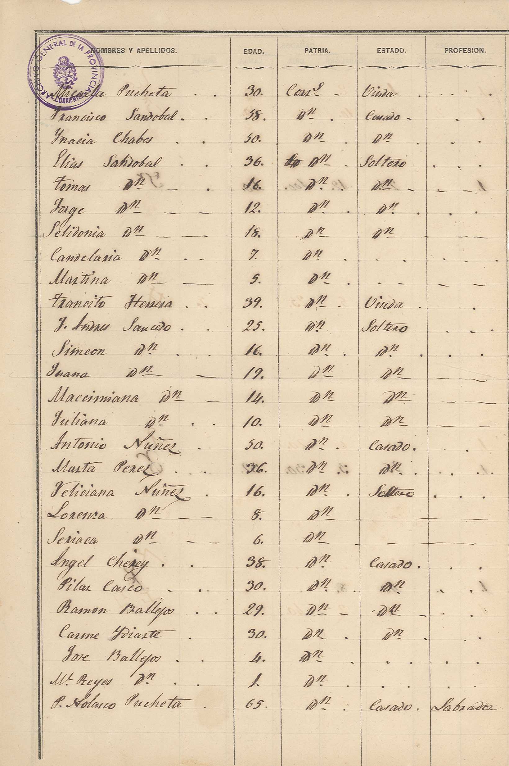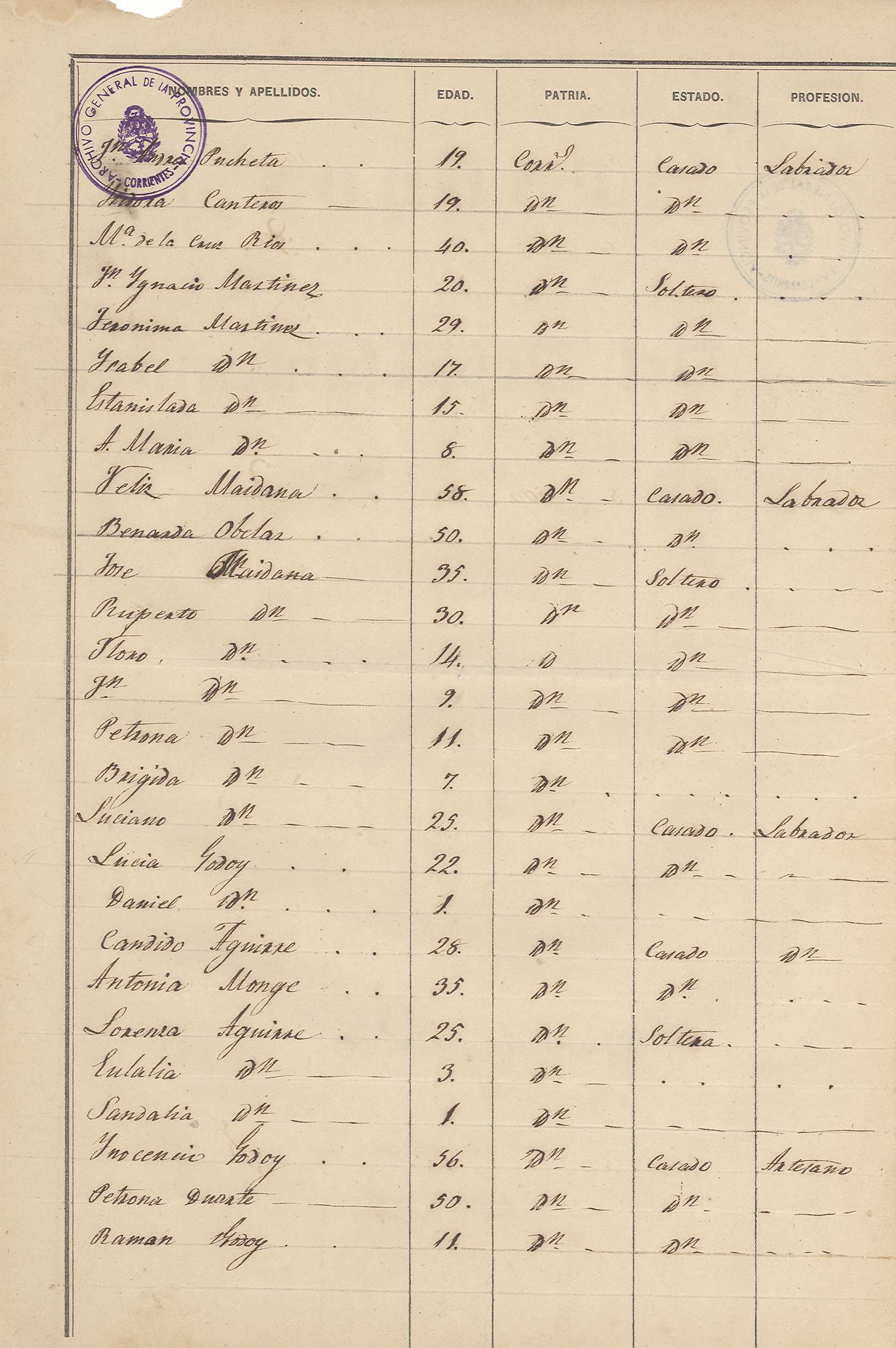 Padrón N° 7 del Departamento Pai Ubre- Partido de la 2° Sección