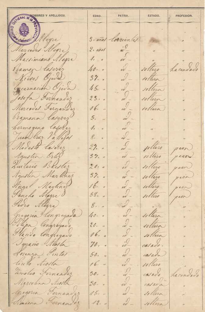 Me pregunto si estará disponible el listado de personas del censo de 1833 de la provincia de Corrientes. Saludos!